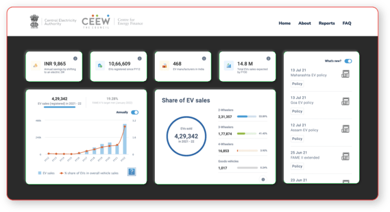 We were fortunate to have worked with Indian Government organizations such as the Central Electricity Authority (CEA) and the CEEW Centre for Energy Finance (CEEW-CEF) to help build dashboards to track electric mobility and renewable energy. But we don’t wish to stop here! We’re confident that the same quality of work will be translated to other industries like